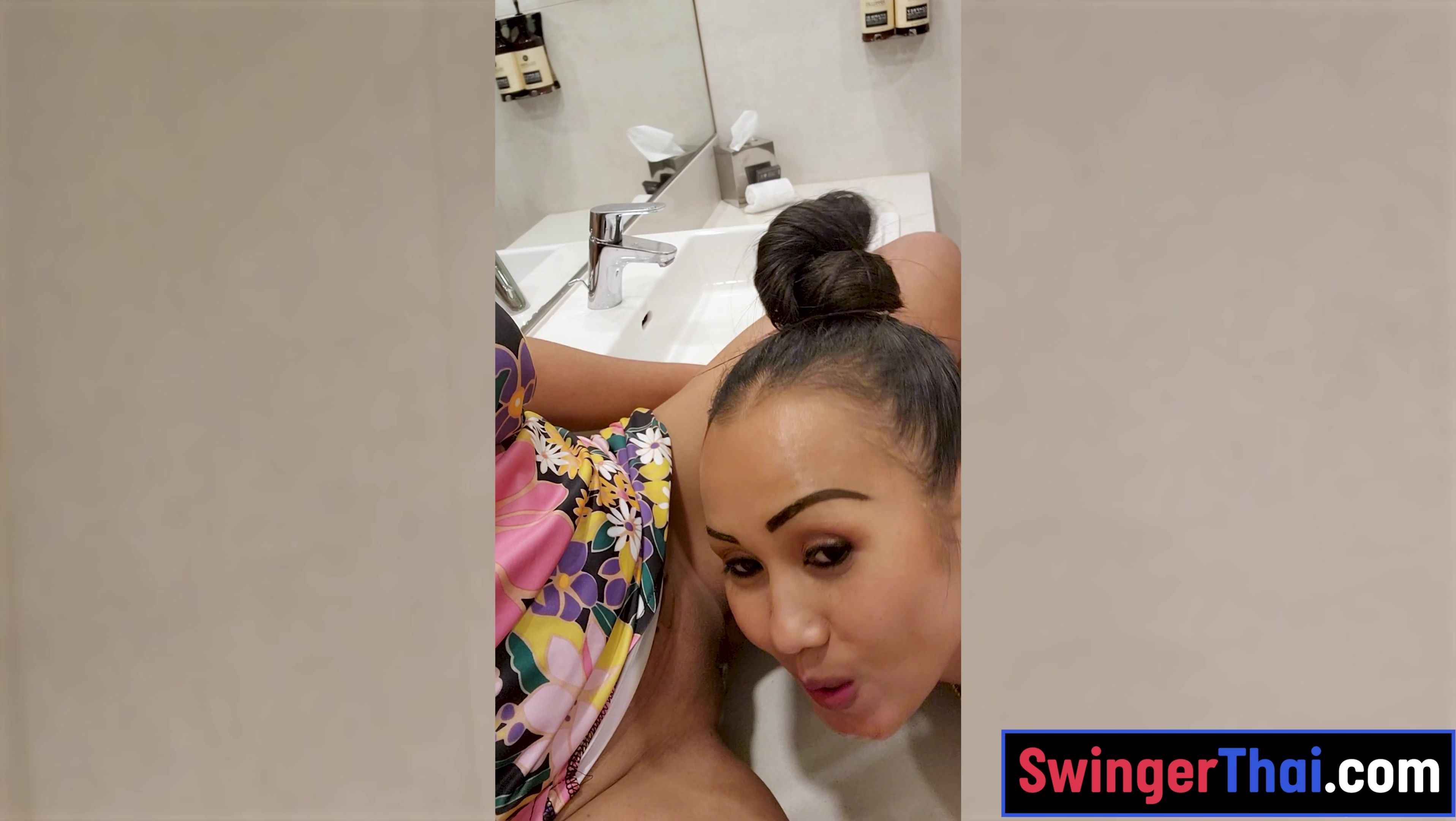 Thai MILF girlfriends lesbian shower fun with pussy licking and dildos