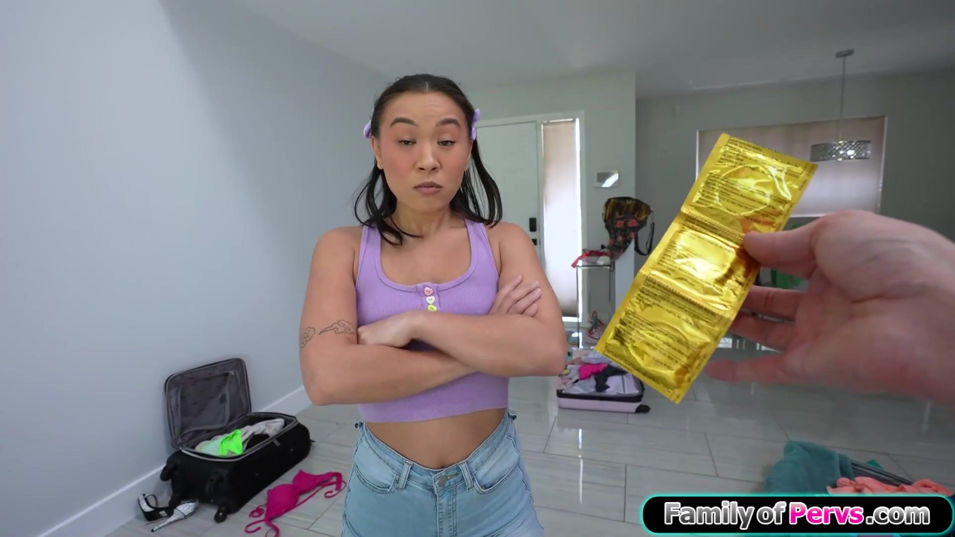 Asian stepsis Kimmy Kimm is super horny and lifts up her top to let her stepbro touch her small tits.The guy cant believe he is touching his petite stepsisters pussy and enjoys when the brunette deepthroats his big cock.She rides his dick for cum