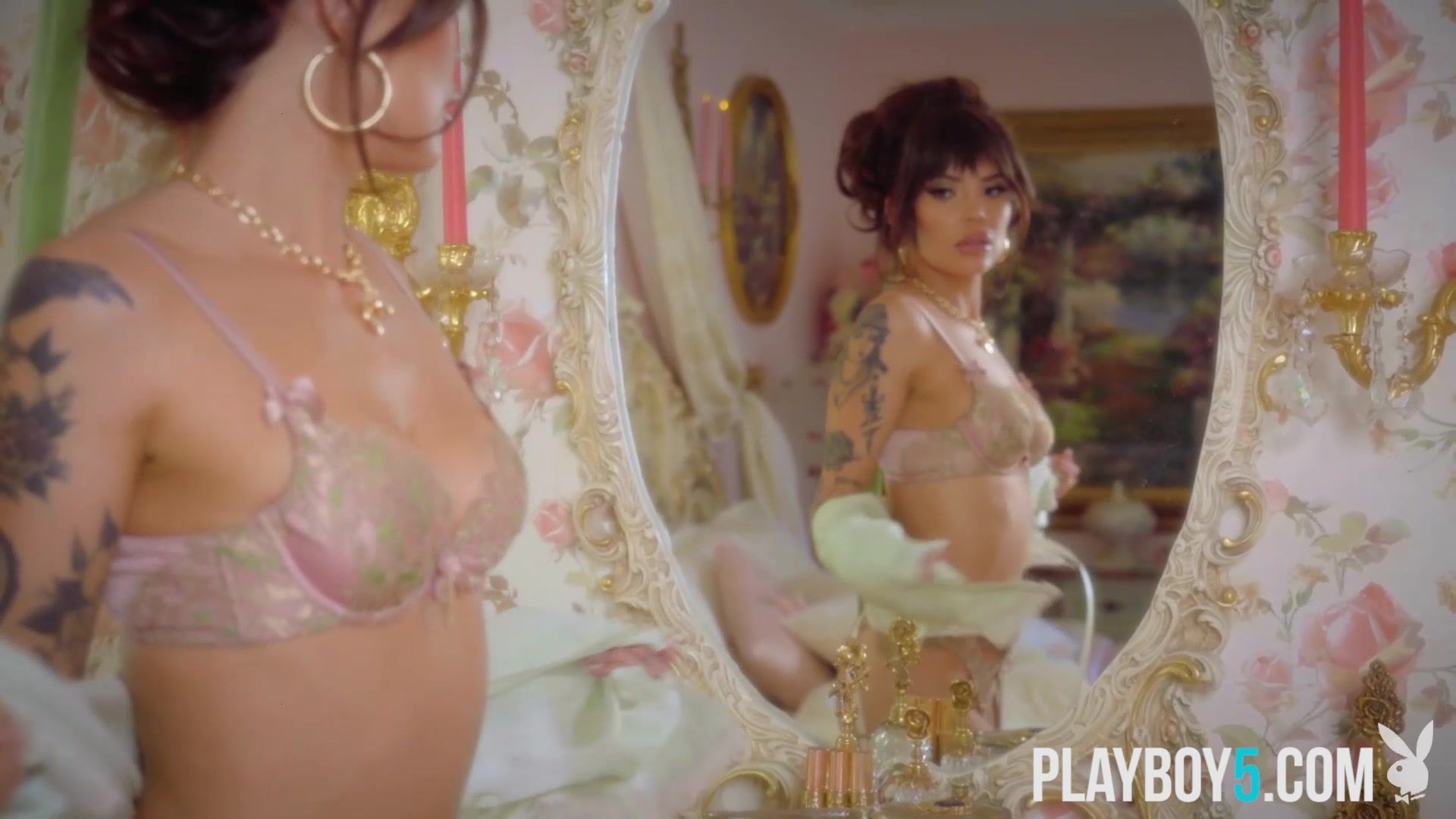 Sexy tattooed mixed race teen babe Emma Jade does a solo striptease for Playboy taking off her hot lingerie to expose everything! Then we have petite Russian MILF Taya Vais doing the same in an outdoor setting looking great as well!