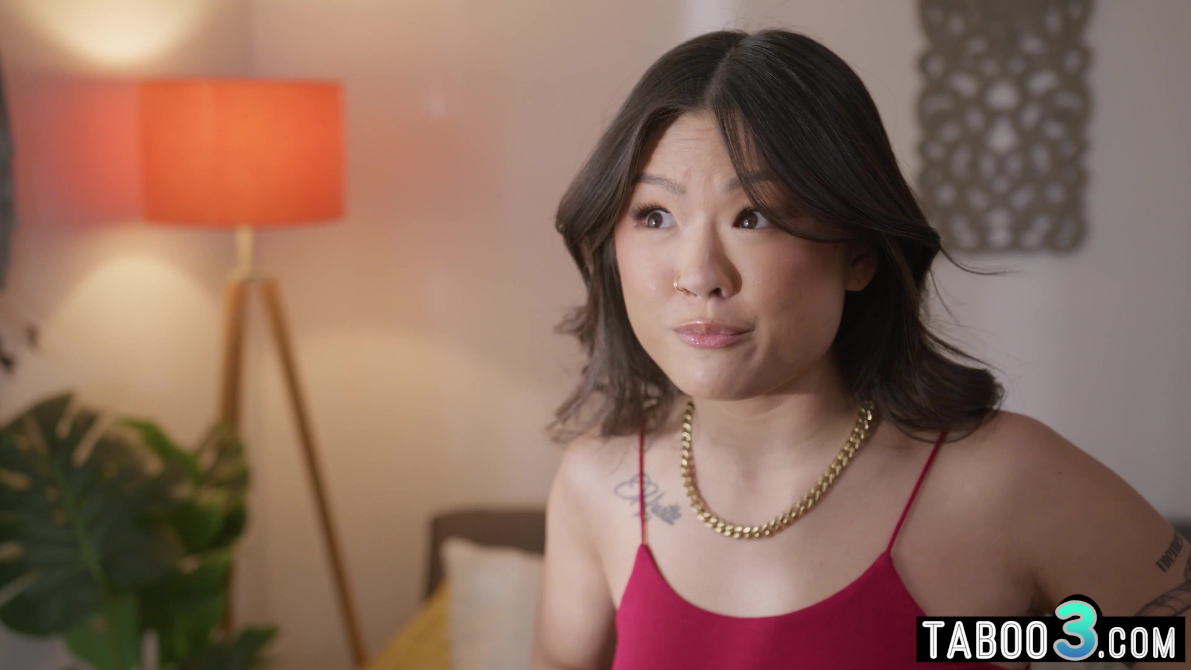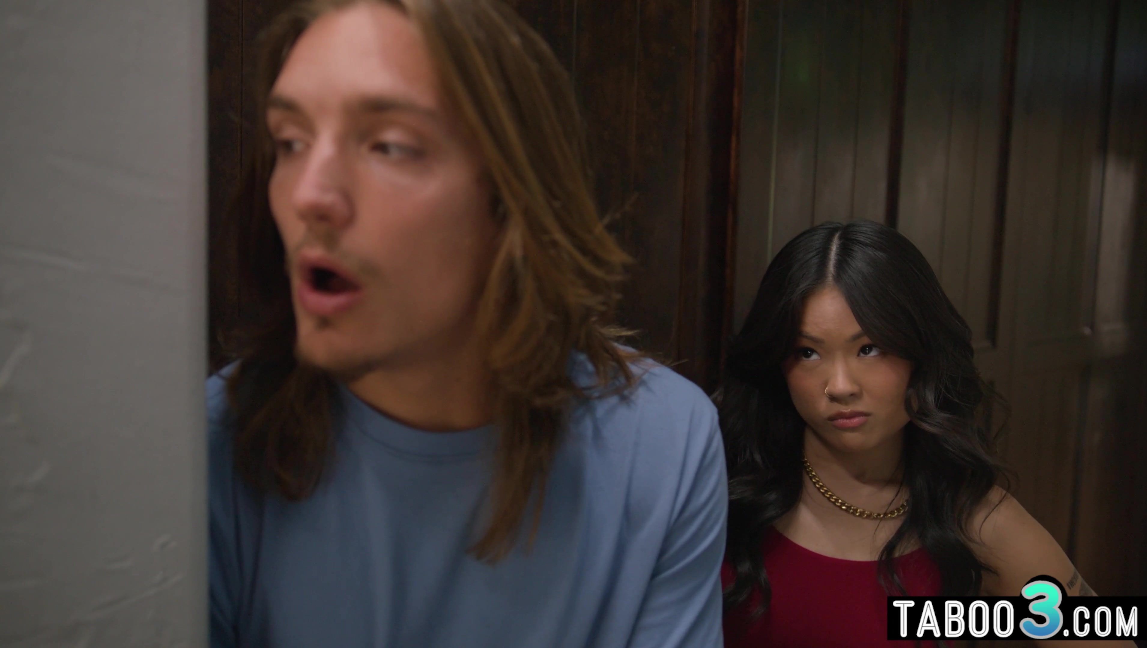 Petite asian teen stepsister Lulu Chu notices that her perv stepbro is spying on their MILF stepmom in the bathroom He pleads with her not to tell their stepmom what he has been doing and offering whatever she wants to keep it a secret