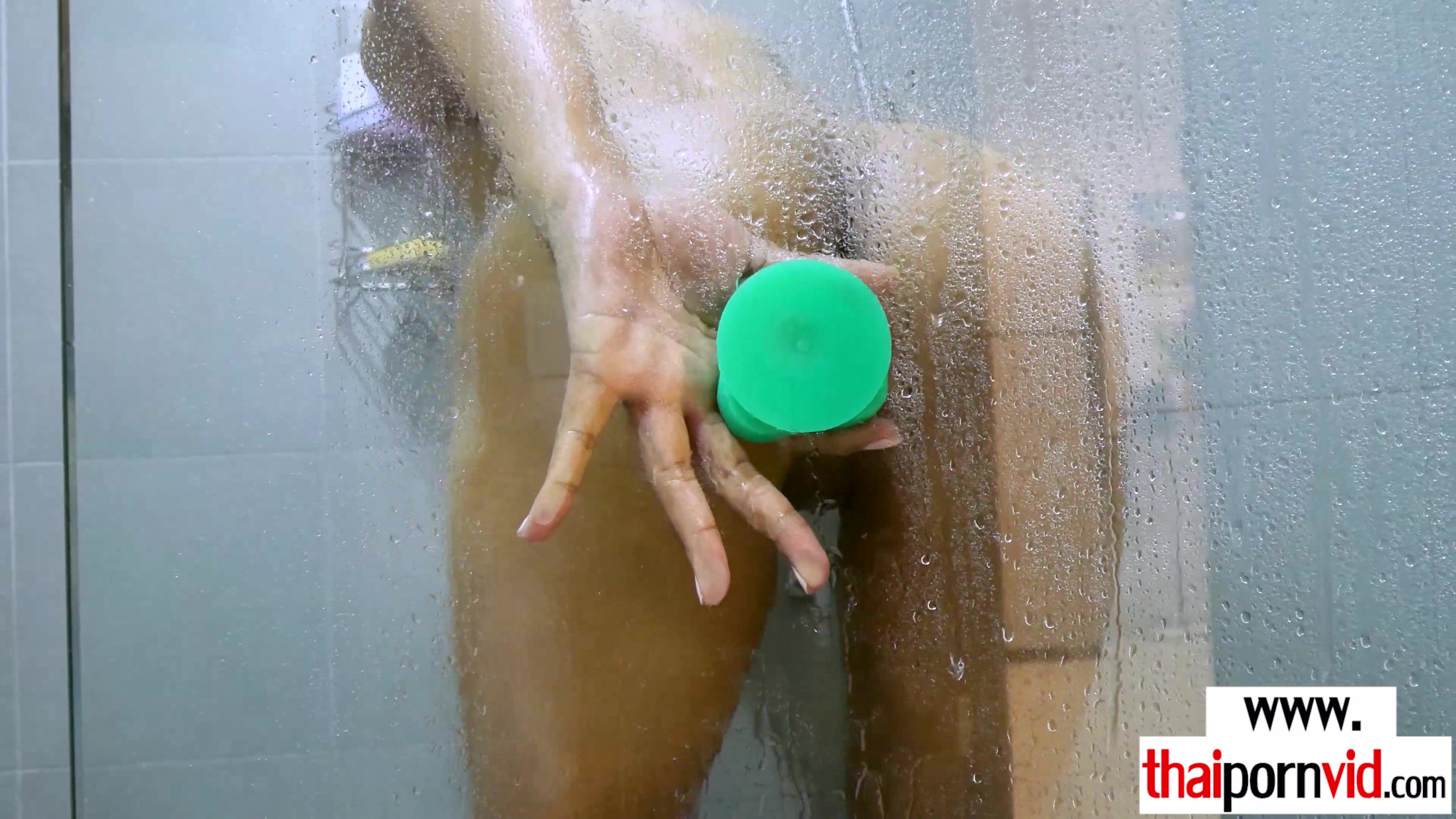 Petite amateur Thai MILF Jeena with small tits is taking a shower to prepare her tight asian pussy for her next client but the farang is late so she has to feed her hungry pussy so she takes her dildo and starts masturbating