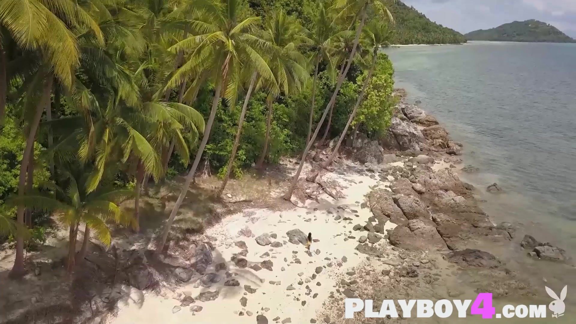 Sexy big tits Thai teen Kahlisa solo striptease on the beach for Playboy