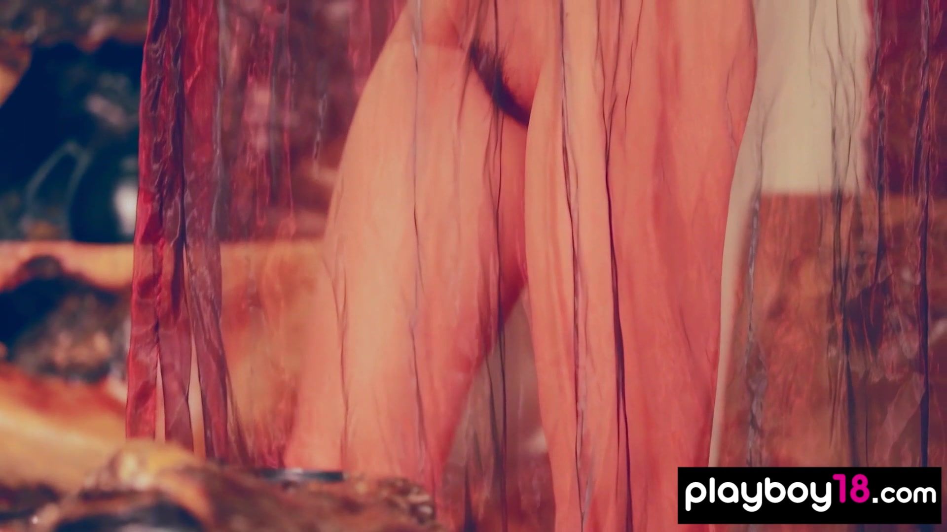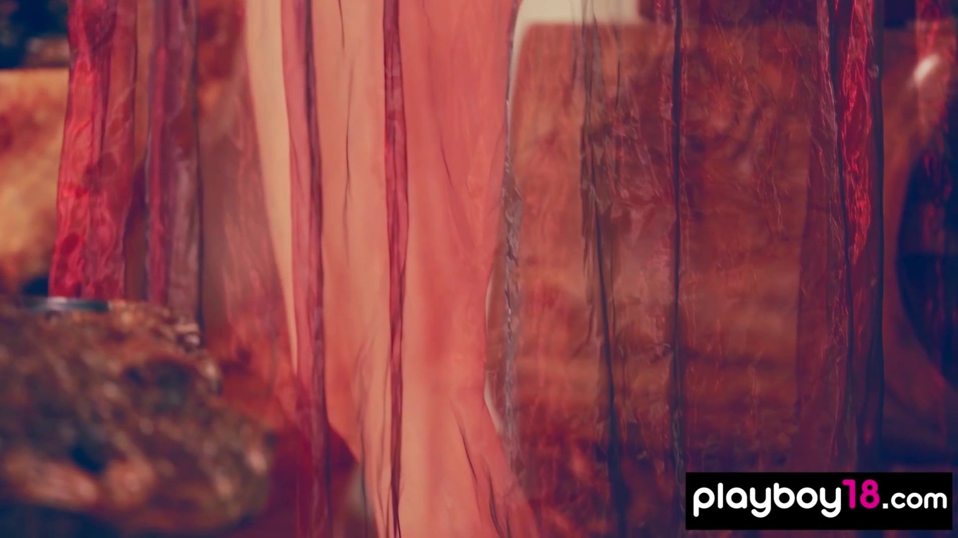 Glamorous all natural Chinese teen porcelain doll named Wu Muxi with big boobs taking off her sexy black lingerie behind a sheer silk curtain then she spreads her long legs to introduce us her exotic hairy pussy